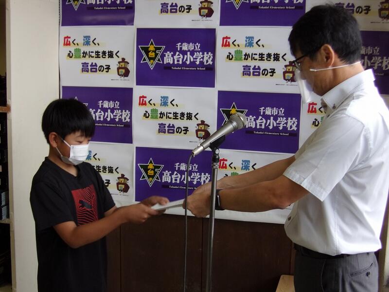 後期児童会認証式を行いました。後期の書記局・委員長に認証状が手渡され、それぞれのリーダーが抱負を全校児童に語りました。役員・委員だけでなく、全員の力で高台小学校を明るく楽しい学校に創り上げていきます。