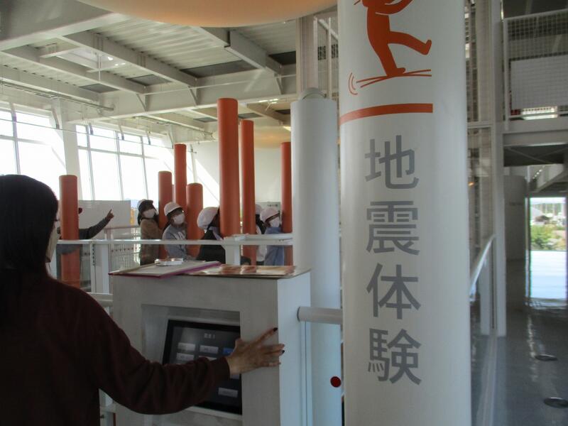 火災が起きたら、どのように避難すると良いか、模型を見ながら学びました。地震を体で感じる体験コーナーや非常用品等で真剣に学んできました。「いざ!」という時のためになる見学でした。