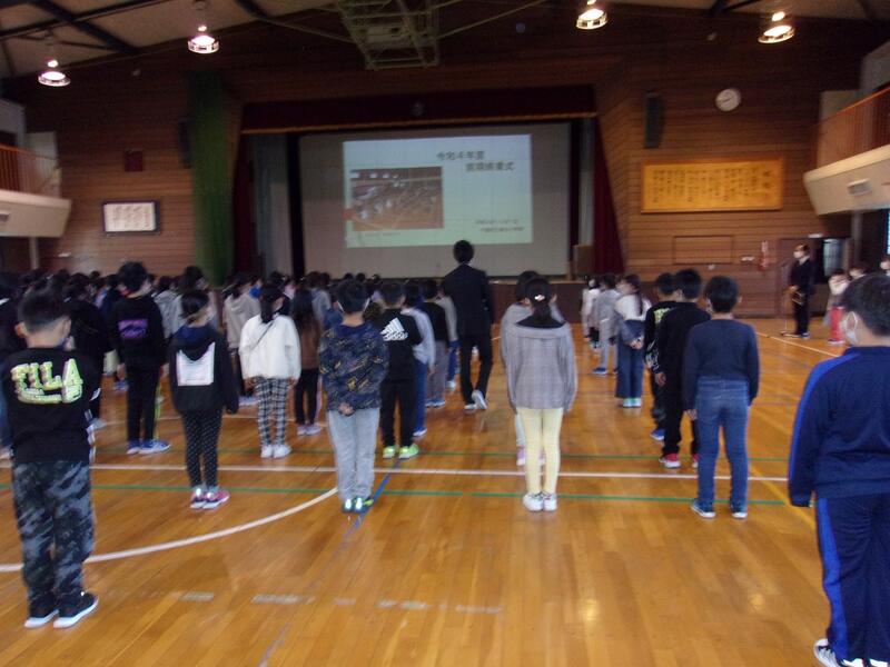 本日、全校児童が体育館に集まって修了式・離任式を行いました。体育館で一堂に会しての行事・集会は4年ぶりでしたが、子供たちは、よい意味で緊張感を持ちながら、立派に参加していました。