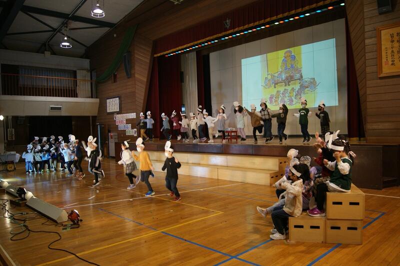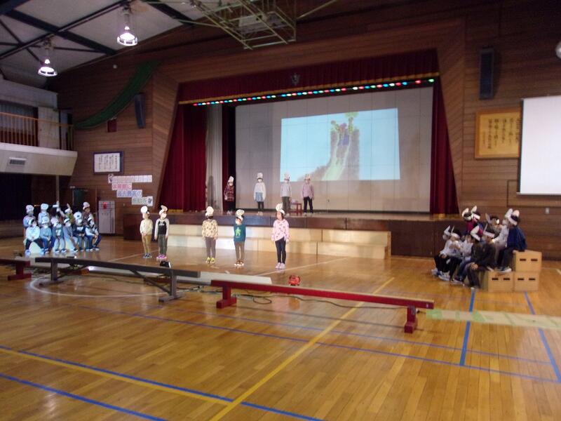 今回は、1年生がつくし幼稚園との交流を本校体育館で行いました。1年生は、学習発表会で演じた「おむすびころりん」を演じたり、きつねダンスを一緒に踊ったり、小学生にまつわるクイズをだしたりしました。「発表が上手だった。」「すごく楽しかった。」等の感想を園児から伝えてもらい、1年生はとても満足そうでした。園児に楽しんでもらおう、と一生懸命に準備・発表した1年生にとって、学び多い交流となりました。