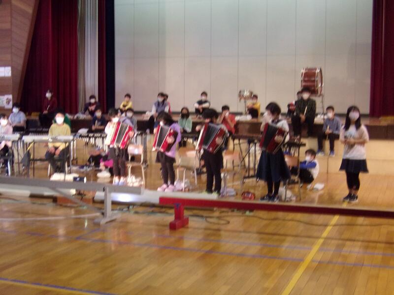 2年生は、音楽「ウンパッパ」「あの青い空のように」「きつねダンス」「おしゃべり音楽時計」を発表しました。リズムに乗った歌、かわいらしいきつねダンス、指揮者に集中して心一つに演奏した器楽。42人全員で力を合わせて発表することができました。