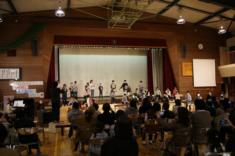 4年生は音楽。リコーダーで「もののけ姫」「月明かりの道」、「あたらしい明日へ」と「この星に生まれて」は合唱、「チキチキバンバン」を器楽演奏で発表しました。きれいなリコーダーの音色、二部で響かせたハーモニー、リズミカルな演奏など、一人一人が主役となって、これまでの練習の成果を表現することができました。