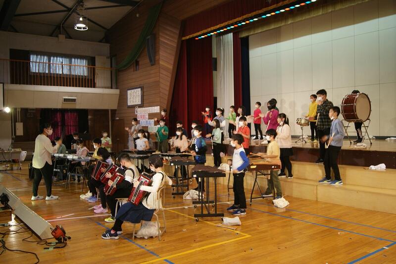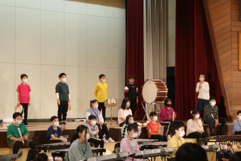 5年生は、音楽で合唱曲「君をのせて」、リコーダー曲「星笛」、器楽合奏曲「ダンシング・ヒーロー」を発表しました。練習から、自分たちでめあてを立てたり、振り返りをしたりして、パートリーダーを中心に自分たちを高め合ってきた5年生。一致団結して、発表することができました。