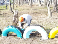 5月2日(土)、開校50周年記念事業としてPTA役員が中心となってグラウンドの遊具のペンキ塗りを行いました。