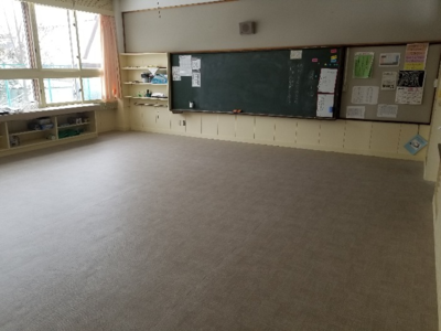 千歳市教育委員会のご厚意により、冬休み終了を前に、ひだまり1の教室の床がパンチカーペットからクロス地に貼り替えられました。