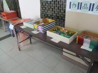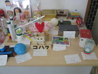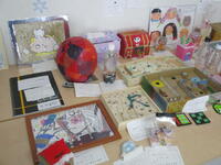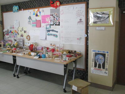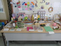 2年生は、学年に割り当てられた机では足りずに、机1つを追加して展示。力作揃いです。
