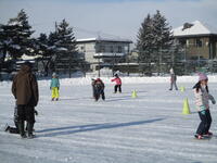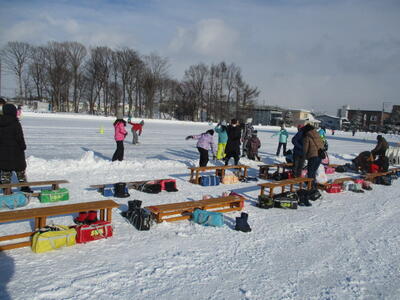 1・2時間目は6年生。明るい日差しの下、さわやかなスケート場オープンと思いきや、