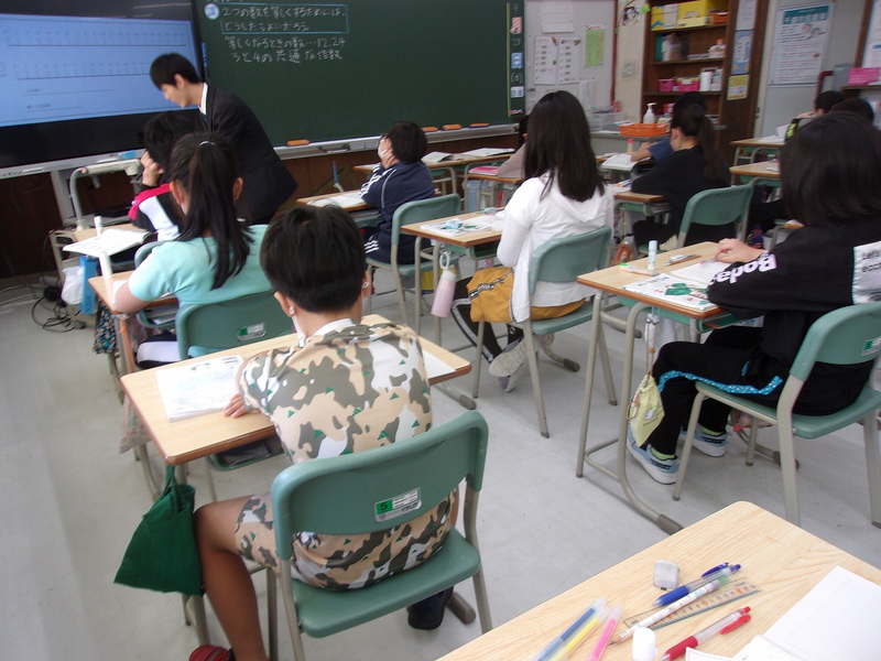 本日3時間目に、実習生が5年1組で授業を公開しました。教科は算数で「公倍数、最小公倍数」の内容でした。この日のために計画・準備してきた教材の提示や指示・発問をしながら、子供たちの活躍を多く引き出そうと、努力する実習生の姿が見られました。実習期間中の努力の成果が現れていた授業でした。
