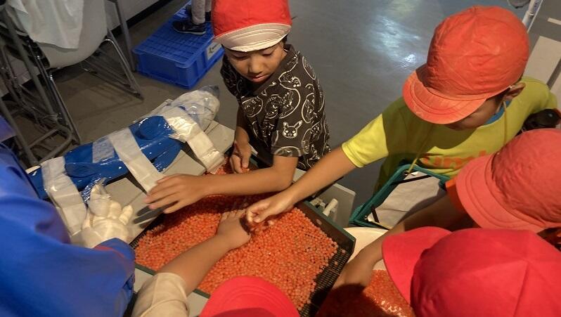 3年生は(株)キッコーマン千歳工場と千歳さけますの森さけます情報館へいきました。キッコーマン工場では、しょう油が作られるまでの工程を見学しながら、製造工程や働いている人が工夫していることについて学びました。千歳さけますの森さけます情報館へ移動し、ふ化場での仕事やサケやマスの生育の様子について、館内見学や質問を通して学習しました。また、餌やり体験や稚魚の放流体験を通しさけやますについての学びを深めることができました。