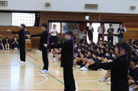 生徒会企画による「市内新人戦 壮行会」が行われました。3年生が引退した各部の決意発表や円陣から初々しさを感じました。また生徒会による3・3・7拍子に合わせた激励は、とても盛り上がりました。29日の新人戦での各部の活躍を期待しています。