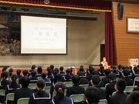 2年生を対象に人権教室を実施しました。人権擁護委員の方を講師に招き、「SNSに潜む危険」をテーマにお話しいただきました。