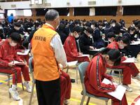 3年生は高校入試の入学願書を作成しました。見本に基づいて下書きし、本番用紙に清書です。緊張しながら、丁寧な字で書きます。受験勉強も大詰め、面接がある人は、面接練習も行います。進め!受験生!