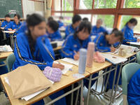 その後、ミアーズ中学校の生徒2名はそれぞれ2年生と3年生の学級に所属し、日本の学校生活の体験や交流が始まりました。まだまだ緊張している様子もありましたが、そんな2人に優しく声をかける富丘中の子ども達の姿が印象的でした。