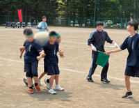 本校の体育祭種目は、「1~3年カムバックサーモン」、「1年大玉運び」、「2年インディアン水車」、「3年大縄跳び」、「1~3年玉入れ」、「1~3年学級対抗全員リレー」…と、団体種目が中心です。ですから各学級、体育祭までの時間の中で仲間達と声をかけ合い、励まし合い、知恵を出し合い…と、1つ1つ困難を乗り越え、団結力を高めながら体育祭を迎えました。