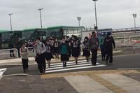 修学旅行2日目。本日の起床は6:00。朝食まで1時間。眠い目をこすりながら朝食会場には誰一人遅れることなく集合しました。元気にご飯を食べています。この後、ホテルを予定通り出発しました。