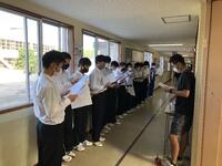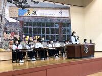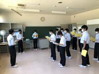本日5校時、生徒会役員選挙立会演説会が行われました。2年生は体育館、1・3年生は各教室リモートで、それぞれ演説を視聴しました。立候補者は堂々と所信表明演説をすることができました。立候補者の皆さん、選挙管理委員の皆さん、たいへん立派な演説会でした。
