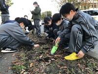 本日、全学年有志生徒による「プチボラ」が行われました。来年に向けて、生徒会役員と有志生徒で花壇の整備を行いました。