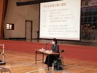 千歳市PTA連合会富丘中学校区教育交流会を実施し、校区内4校の保護者・教員約50名が参加しました。講師に石狩教育局より小田島社会教育主事をお招きし、「スマホ・ゲームとの付き合い方~家庭のルールづくり~」をテーマにお話しいただきました。子どもを取り巻く環境の変化やスマホ・ネットトラブルについて具体的なお話をいただいたあと、グループごとに意見交流を行いました。