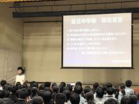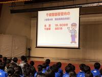 千歳警察署生活安全課より講師を迎え、「犯罪例や防犯」等について千歳市内などでの具体的事例を挙げながら説明していただきました。犯罪被害にあわないための方法や自転車盗難防止の「ツーロック」などについてもアドバイスを受けました。集会の最後には、生徒会長より「防犯宣言」が読み上げられました。