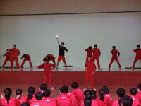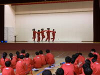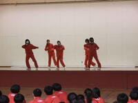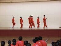 体育の授業で取り組んだダンスを学年で発表しました。観客側の生徒からあたたかい声援や手拍子が送られながら、グループ毎に練習したダンスをノリノリで披露していました。