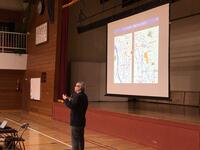 講師に北海道立総合研究機構フェロー 株式会社まちづくり計画設計取締役統括技師 松村博文様をお招きし、校区内4校の保護者・教員・見守り隊など約50名が参加しました。
