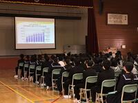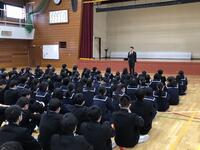 明日は私立一般入試A日程、来週にはB日程があります。3年生は私立入試を前に集会に参加し、受験生としての心構えなどを学年全員で確認しました。頑張れ富中生!