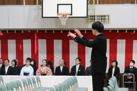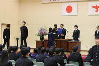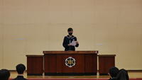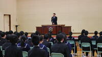 令和5年度同窓会入会式が行われ、この春に富丘中を旅立つ3年生に向けて、稲田同窓会長から同窓会の説明や意義などについてお話しいただきました。また、各学級より第49期同期会幹事が選出され、同期会代表からも入会に向けての挨拶をいただきました。