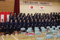 3月14日(木)に、第49回卒業証書授与式が行われました。173名の卒業生は、中学校生活の多くの時間をコロナ禍で過ごすことになりましたが、最後の1年間はさまざまな行事において、コロナ前のような活動を行うことができました。今回の卒業式でも5年ぶりに在校生が出席し、一緒に合唱を披露し、感動のもとに式を終了しました。