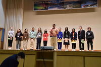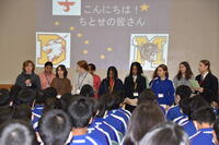 1992年から続く姉妹都市交流事業で、5月30日(火)~6月1日(木)の期間、アラスカ州アンカレッジよりミアーズ中学校の生徒、教職員の皆さんが来校しました。30日(火)は、体育館にて歓迎会を行い、お互いの文化などについて交流を行いました。その後、本校生徒と一緒に授業を受けたり、給食を食べたりするなど短い2日間ではありましたが、お互いに貴重な経験をすることができました。