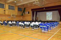 全校生徒が体育館に集い、対面式を行いました。少し緊張した表情で入場した1年生。まず、生徒会組織や各委員会の活動内容の紹介があり、その後、部活動の紹介が行われました。どの部も工夫を凝らした内容で、大いに盛り上がりました。生徒会活動や部活動の先輩たちの説明がわかりやすく、1年生にとって中学校生活に期待が膨らむ集会となりました。部活動は魅力的に映ったようです。