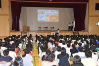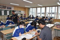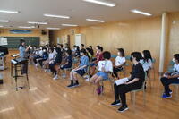 8月18日(金) 北陽小学校、みどり台小学校の6年生を対象に体験入学を実施しました。1,2時間目は中学校の教員が授業を行いました。どのクラスの授業でも、積極的に授業に取り組む6年生の姿が印象的でした。3時間目は、体育館で生徒会役員が、勇舞中学校での生活や、取り組みについて説明がありました。短時間ではありましたが、勇舞中学校独自の取り組みである、「ノーチャイム」など、中学校生活を体験できたのではないかと思います。