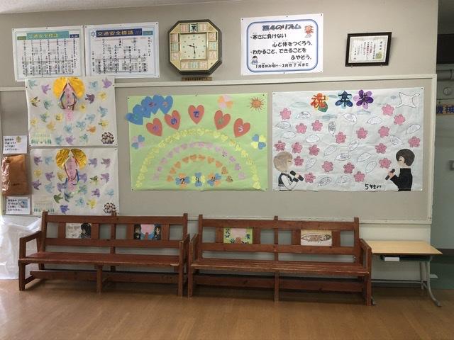 1年生から6年生までの写真を見て、6年間を振り返りました。