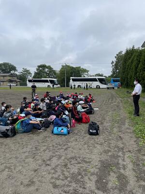 5年宿泊学習01 投稿日時 : 2022/07/06 編集長 カテゴリ: 予定通り出発式を終え、1日目の日程がスタートしました。見送りの保護者の皆さんに、元気な声で「行ってきます。」が言えて、大変立派でした。