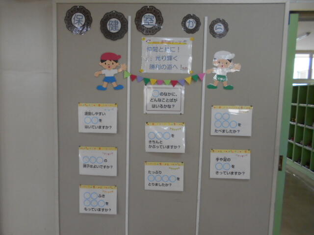 玄関ホールの所に「保健室から」という掲示コーナーがあります。