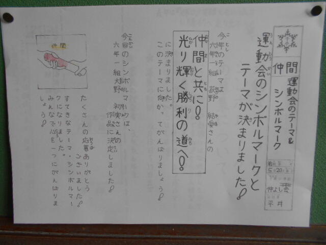 仲よし会の呼びかけで、前期スローガン「仲間」を