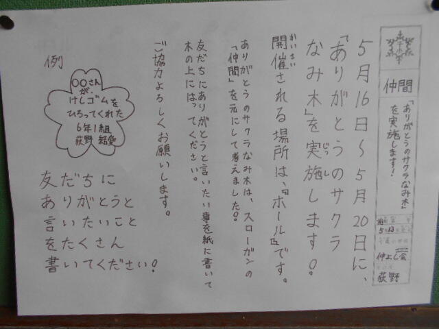 ありがとうのサクラなみ木 (仲よし会の取組) の  結果