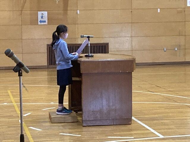 朝、終業式では代表児童による立派な作文発表がありました。その後の認証式では新書記局に仲よし会の鍵が引き継がれました。