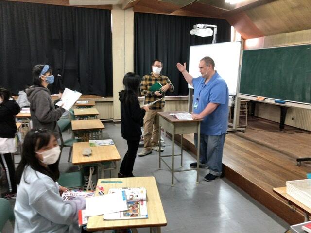 6年生はトラビス先生と実際に会話をするテストをしていました。