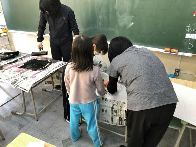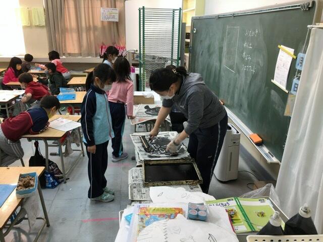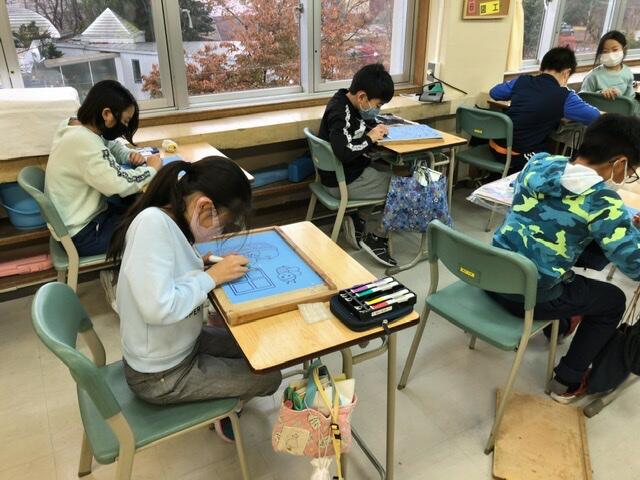 5年生の版画は彫刻刀で彫る作業に入りました。