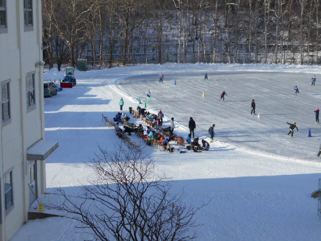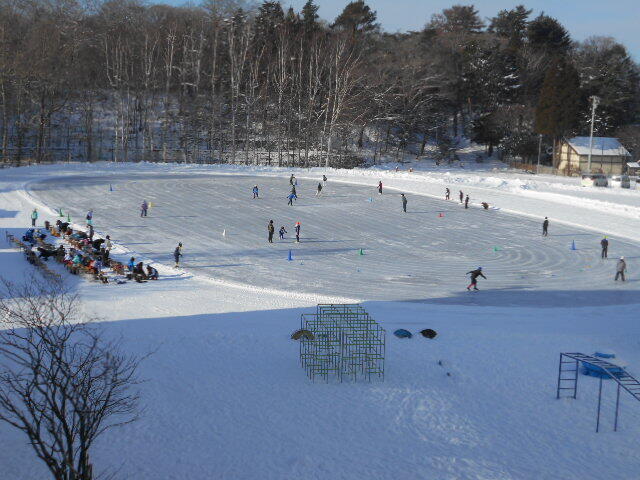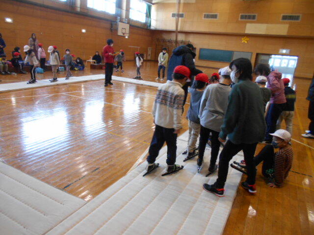 体育館にマットを敷いて、その上をスケート靴で歩きました。