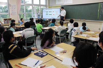 本日、千歳中学校の先生方が来校され、算数科の出前授業を行って下さいました。子どもたちは、とても興味深く、意欲的に授業に参加していました。