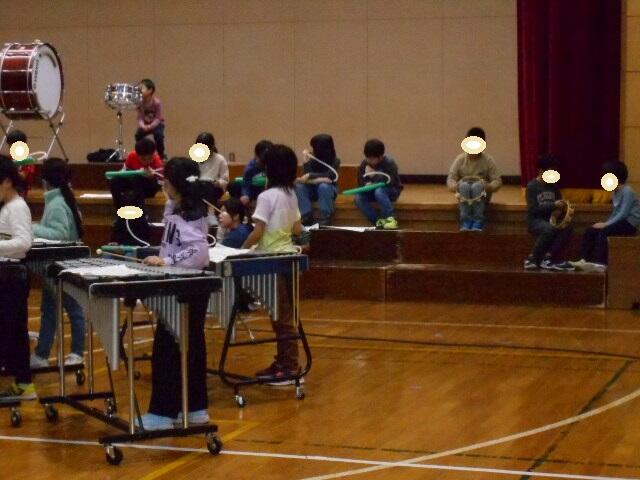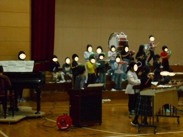 2年生は体育館で器楽の練習をしていました。