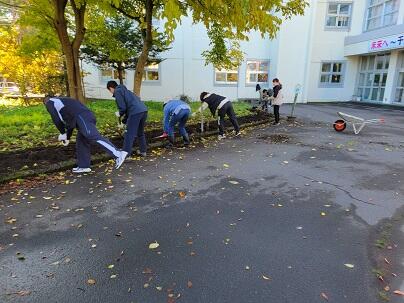 田んぼの後片付け、花壇の整理などをしていただきました。