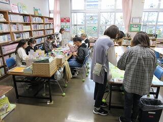 本日は月に一度の図書ボランティアの日です。保護者の皆様にご来校いただき、図書室の整理やポスター作り、飾り付け、椅子の足のクッション付け等を行っていただきました。“子どもたちのために” を合言葉に、素敵な図書室になるよう、ご協力いただきました。本当にありがとうございました。