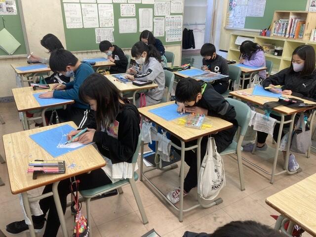 1年生はどちらのクラスも国語の漢字ドリル中でした。