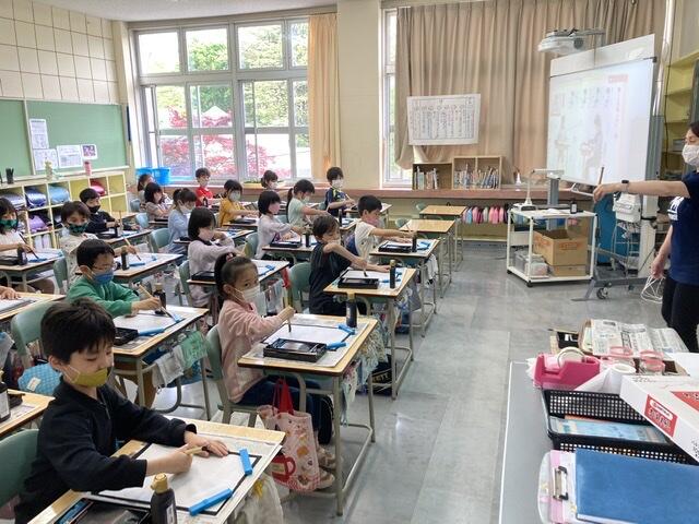 5年生の外国語では、アルファベットの小文字を学んでいました。