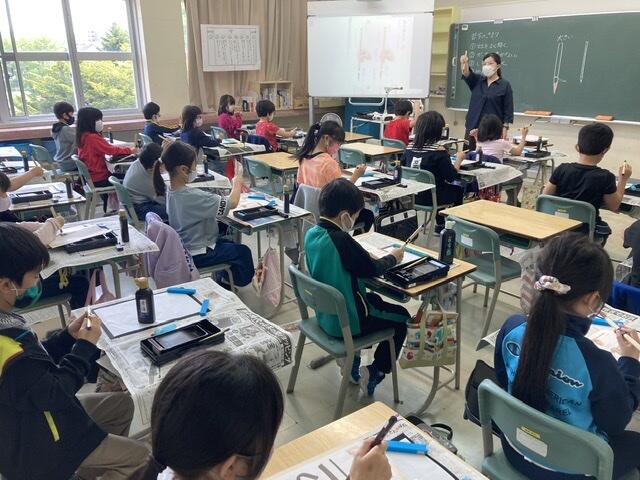 4年生は図工の「まぼろしの花」の色塗り中でした。