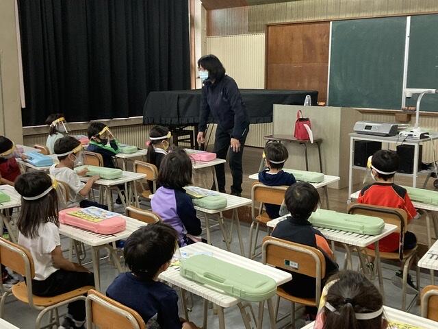 1年生は音楽で鍵盤ハーモニカを使い始めました。