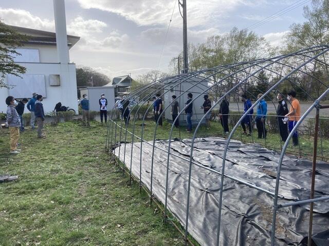 懸案だったビニルハウスも見事に体育館前に移動が完了しました。