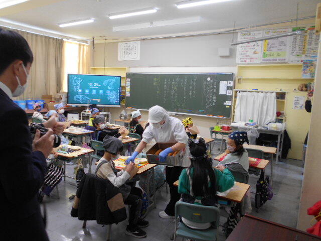 本校の2年生が栄養教諭から揚げパンができるまでを
